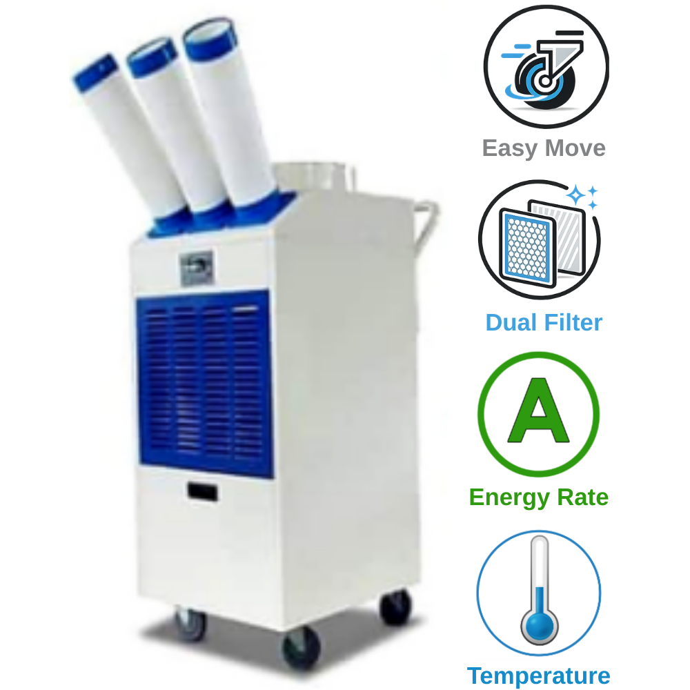 מתאימים לחללים גדולים כדוגמת מפעלים, מחסנים, מקומות עבודה נרחבים, חללים פתוחים , מרתפים, אולמות, אוהלים לאירועים ומקומות הזקוקים למיזוג וקירור שניתן יהיה לנייד מאזור לאזור .