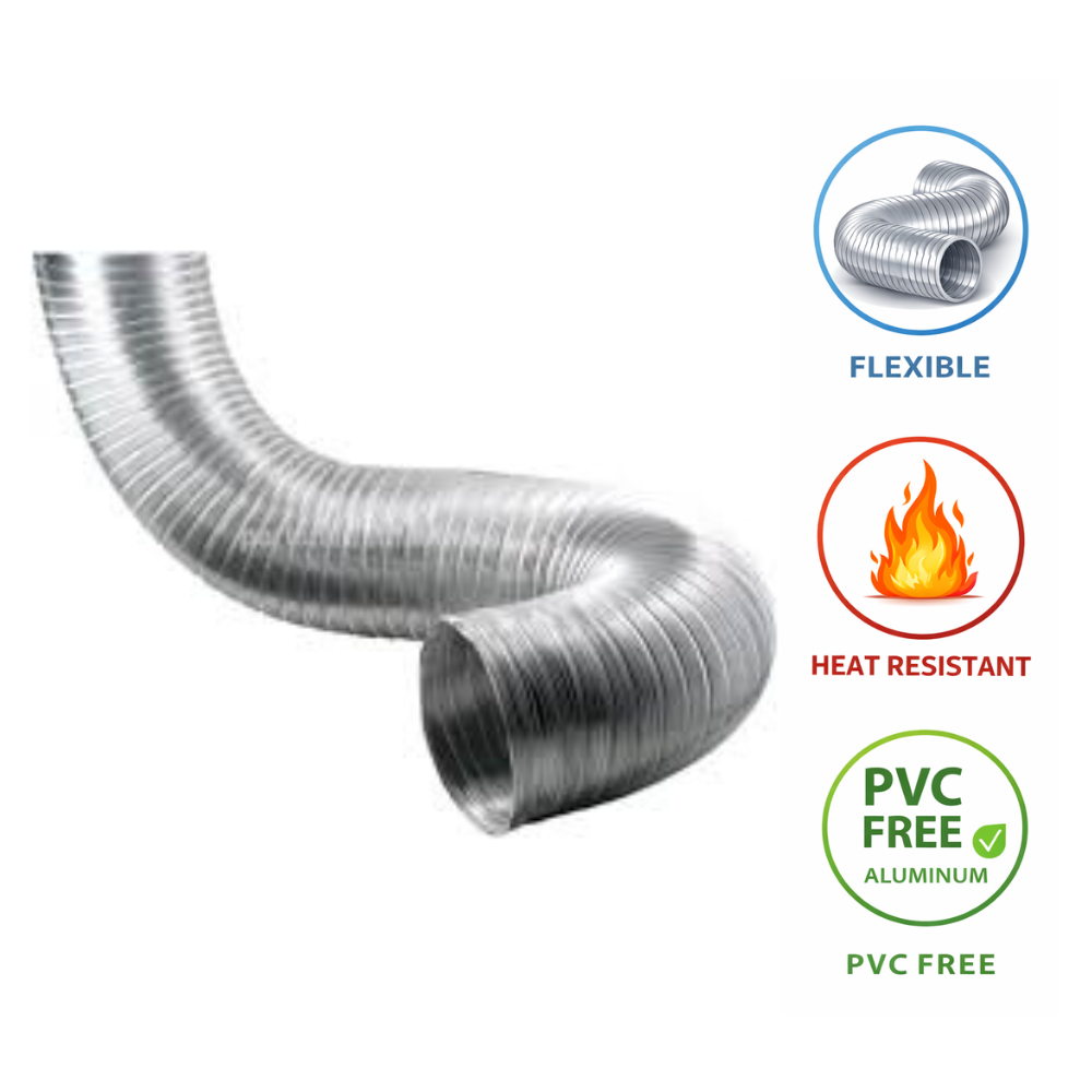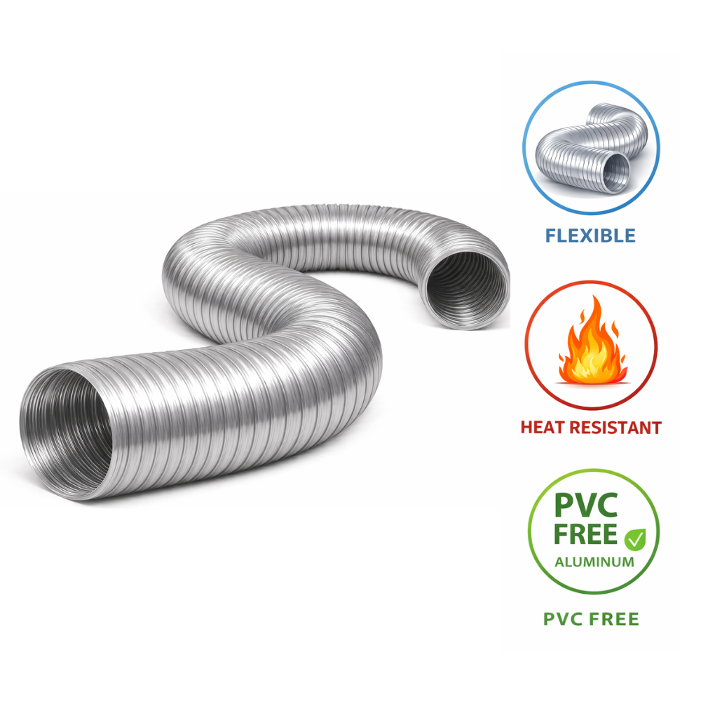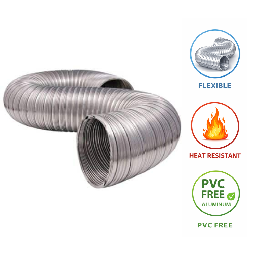צינור אוויר אלומיניום חצי קשיח בקוטר 3" מתאים במיוחד לאוורור חדרי אמבטיה, קולטי אדים במטבח, מערכות פליטה ביתיות ומסחריות וחיבור למפוחים. זהו פתרון אמין, עמיד ונוח שמספק ביצועי אוורור מצוינים לאורך זמן.