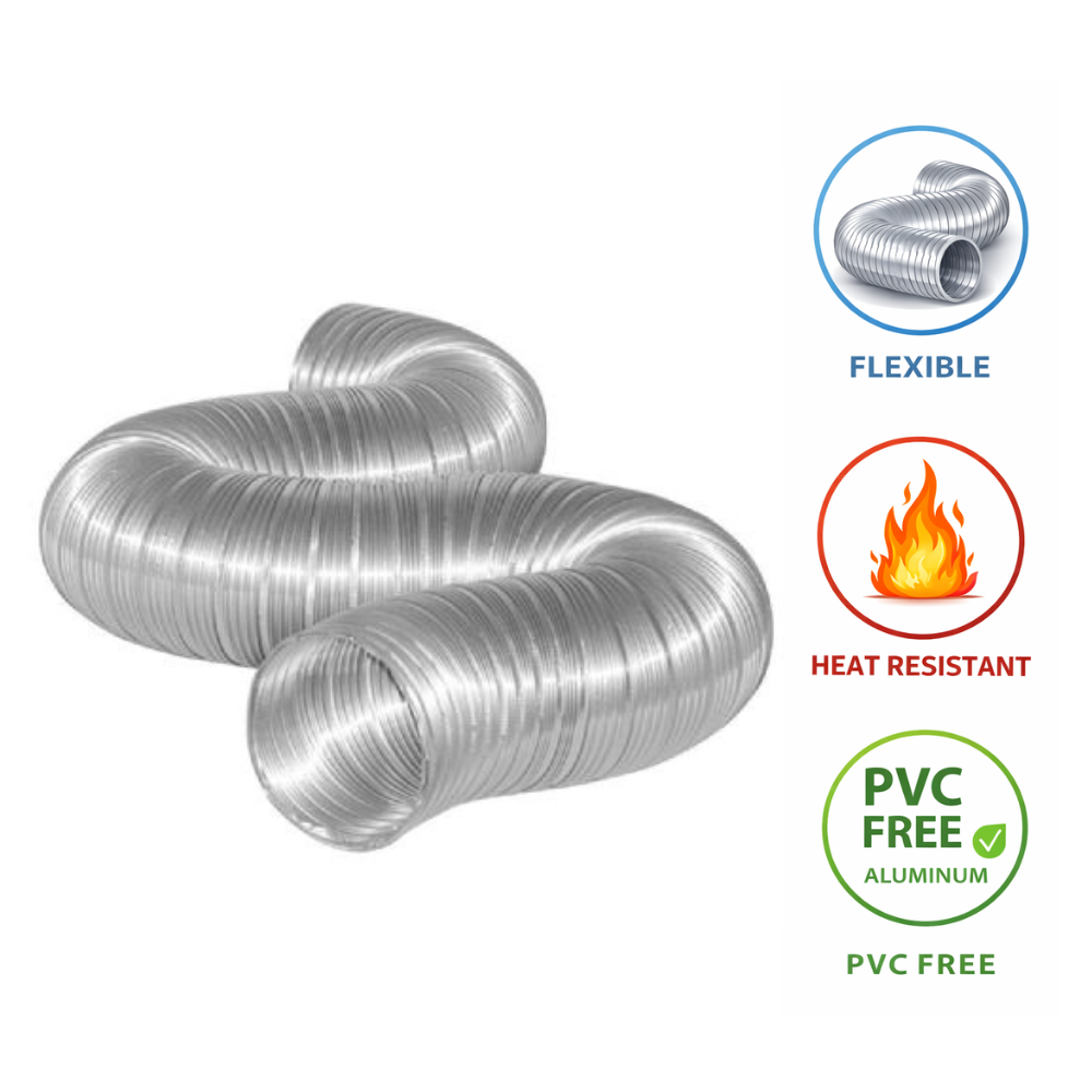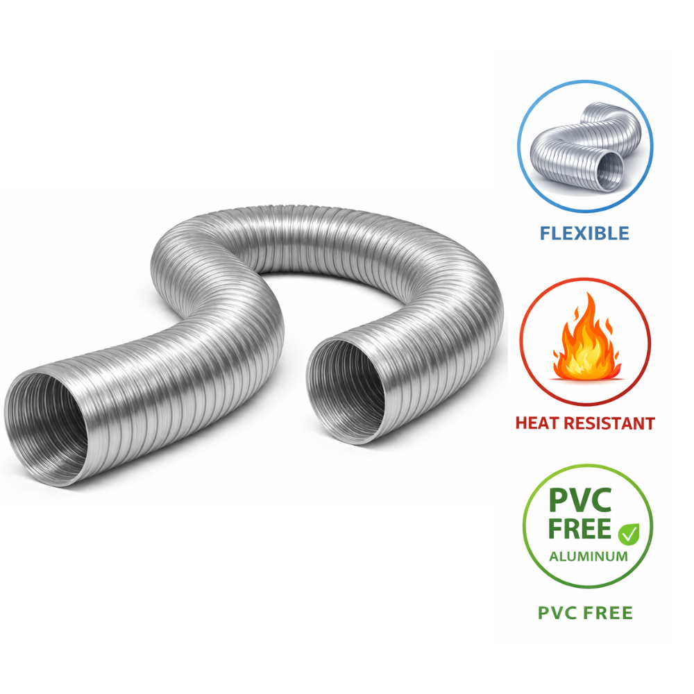 הצינור עשוי סגסוגת אלומיניום המלופפת בספירלה, מה שמעניק לו חוזק מכני לצד גמישות התקנה. ניתן לכופף ולהתאים אותו לתוואי מורכב, אך הוא שומר על צורתו לאחר ההתקנה ואינו קורס פנימה. כך נשמרת זרימת אוויר רציפה ללא פגיעה בביצועים.