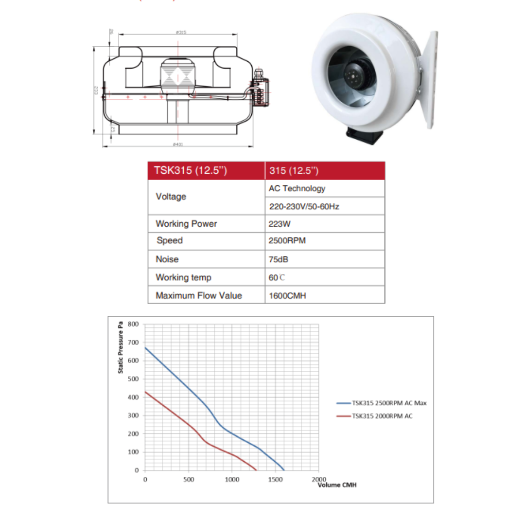 מפוח צנטריפוגלי קווי 12 אינץ 1750 מק"ש דגם ANIA ID12