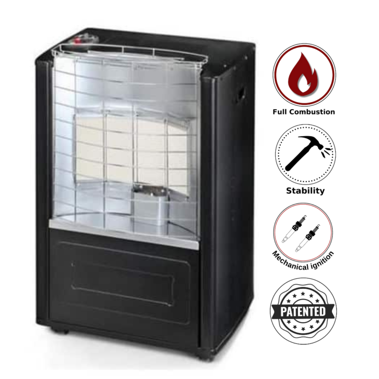 זה מחמם גז נייד שכולל בין שלוש לארבע כיריים אבנים הניתנים לכוונון באופן ידני, התנור יכול לספק הספקים שונים עד 7 KW/H.