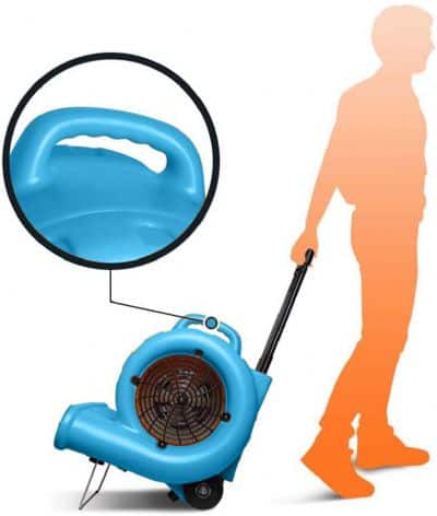 מפוח ריצפתי תעשייתי של ANIA עם 1.25 כ"ס בעל ידית טלסקופית, גלגלים ושסתום מרופד