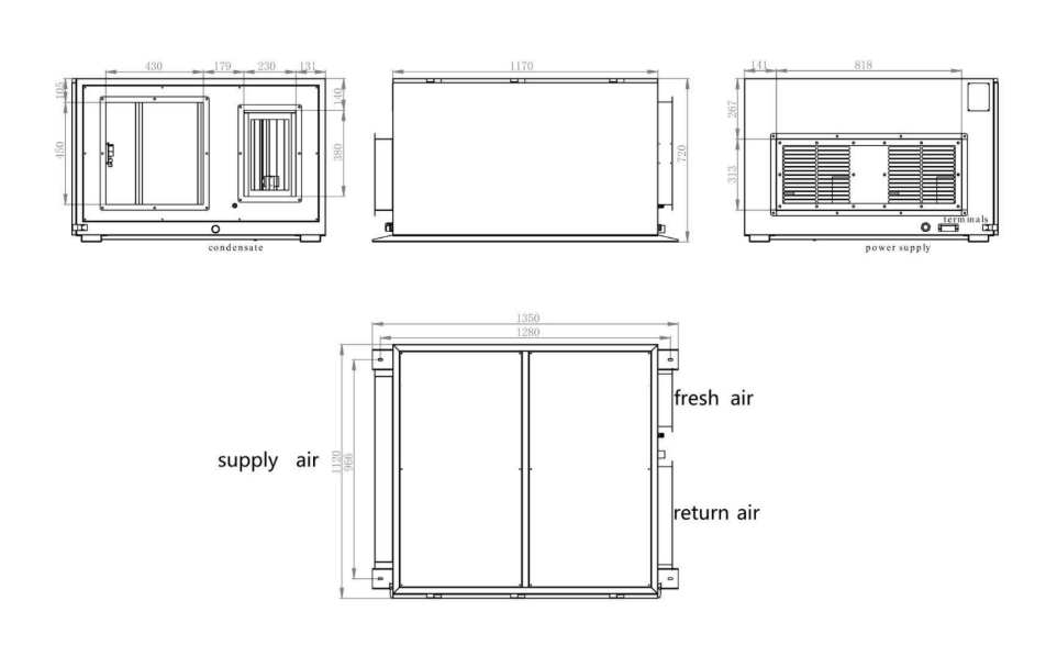 • זרימת אוויר גבוהה: 3500–3850 מ"ק/שעה, עם מאוורר EC מהיר בעל לחץ סטטי גבוה.