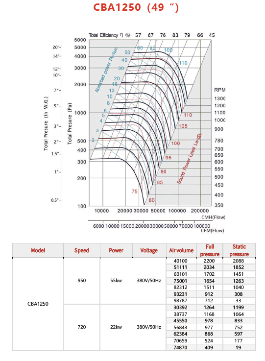 המפוח הצנטריפוגלי מדגם CBA1250 (49") הוא פתרון אוורור תעשייתי מתקדם המיועד לסילוק אוויר, עשן, חום וגזים בסביבות עבודה תובעניות. זה מפוח Heavy-Duty המשלב ספיקת אוויר גבוהה ולחץ סטטי חזק, ומספק ביצועים יציבים לאורך זמן גם בתנאים קשים במיוחד.