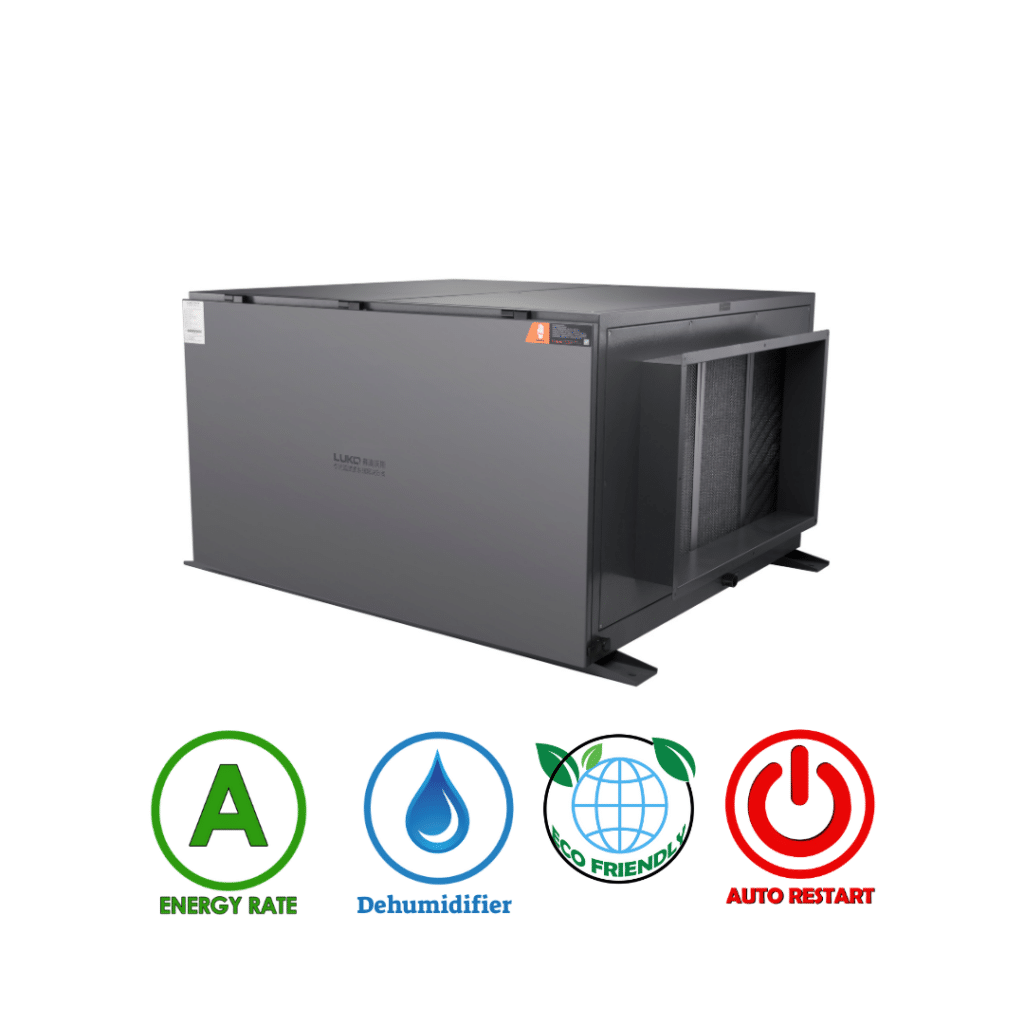 מסיר הלחות המרכזי שלנו מעוצב כך שהוא מבטיח כי החדרים הרלוונטיים יהיו יבשים לאורך היום ללא אובדן אנרגיה, היות והאוויר היבש מוחזר אל תוך החדר ומוכל בתוכו. בנוסף, הוא כולל מערכת טיהור אוויר בעלת 5 שלבים על מנת לוודא שהאוויר מטוהר ונקי. בעזרת השילוב של פעולות הסרת הלחות וטיהור האוויר, מסיר לחות זה, המורכב על התקרה, יכול לספק אוויר צח לחדר שלכם, בו הוא יעבור תהליך הסרת לחות וטיהור לאורך כל שעות היום.
