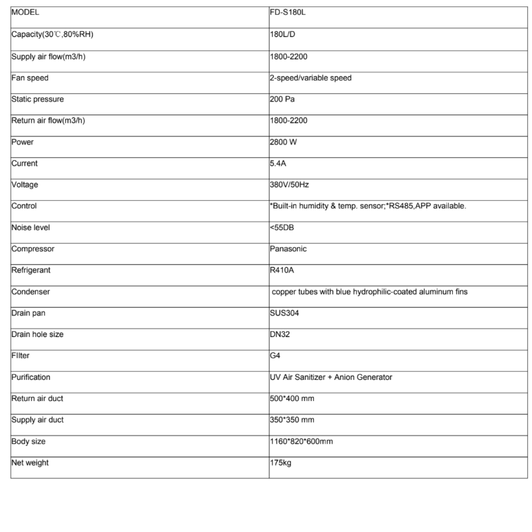 קיבולת הסרת לחות: 180 ליטר / יום – 30°C, 80%RH