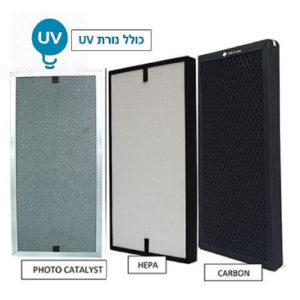 3 פילטרים: פילטר HEPA, פילטר Photo catalyst ופילטר פחמן פעיל.