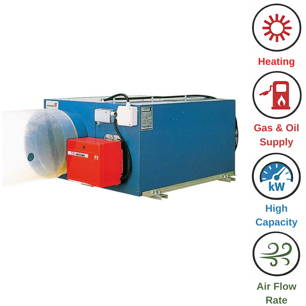 למפעלי תעשייה, מחסנים לוגיסטיים וחללי ענק (דגמי PMX90-PMX120): עבור מבנים מאתגרים בעלי נפח גדול ותקרות גבוהות במיוחד, דגמי הקצה של הסדרה פועלים על מתח תלת-פאזי ומספקים עוצמה תעשייתית ללא פשרות. דגם PMX120, למשל, מסוגל להזרים כמות אדירה של 13,000 מ"ק אוויר בשעה ולזרוק את האוויר החם למרחק של עד 42 מטרים. זהו נתון קריטי למחסנים גדולים, שכן הוא מבטיח שהחום יגיע למרכז החלל ולא יישאר כלוא סמוך לתקרה או לקירות, ובכך מונע "כיסי קור" ומייעל את צריכת הגז.
