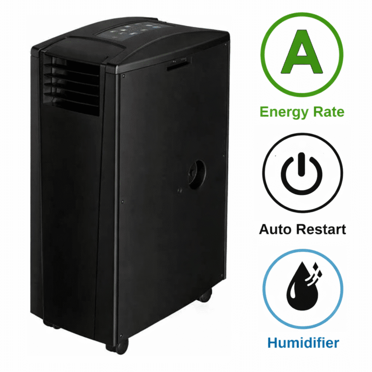 ניידות ללא מאמץ: גלגלים מובנים חזקים המאפשרים להעביר את המזגן בין הסלון, חדר השינה או המשרד בקלות.